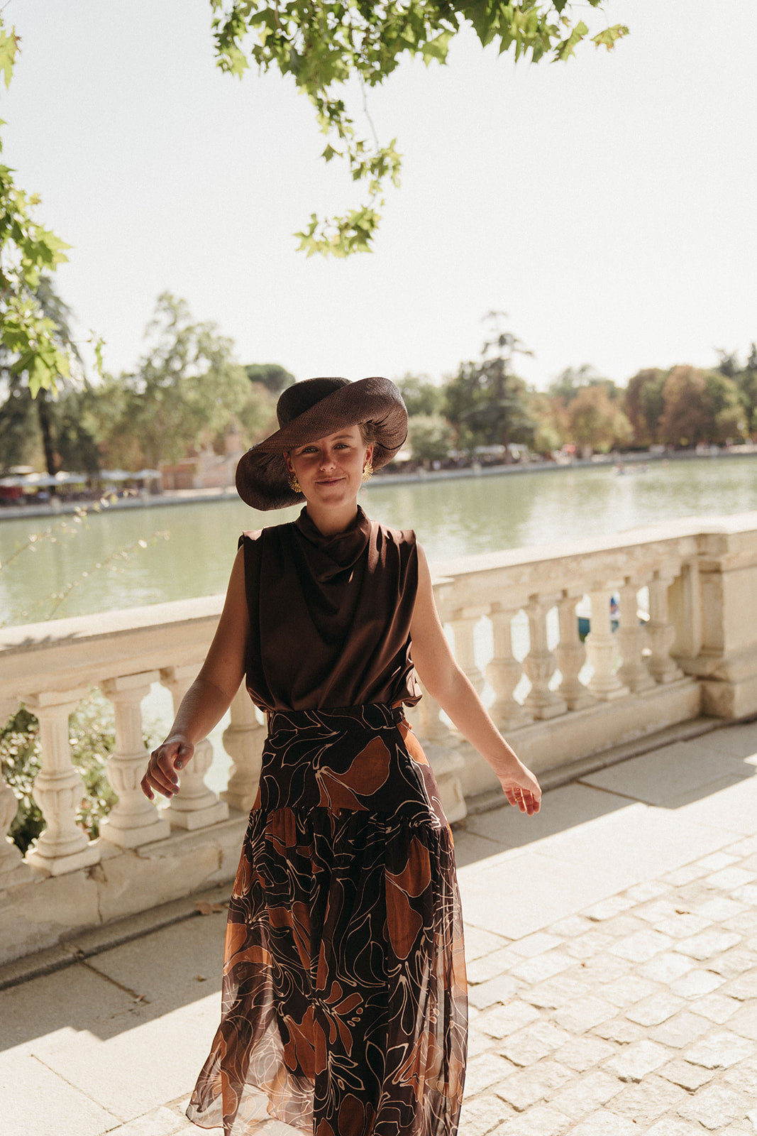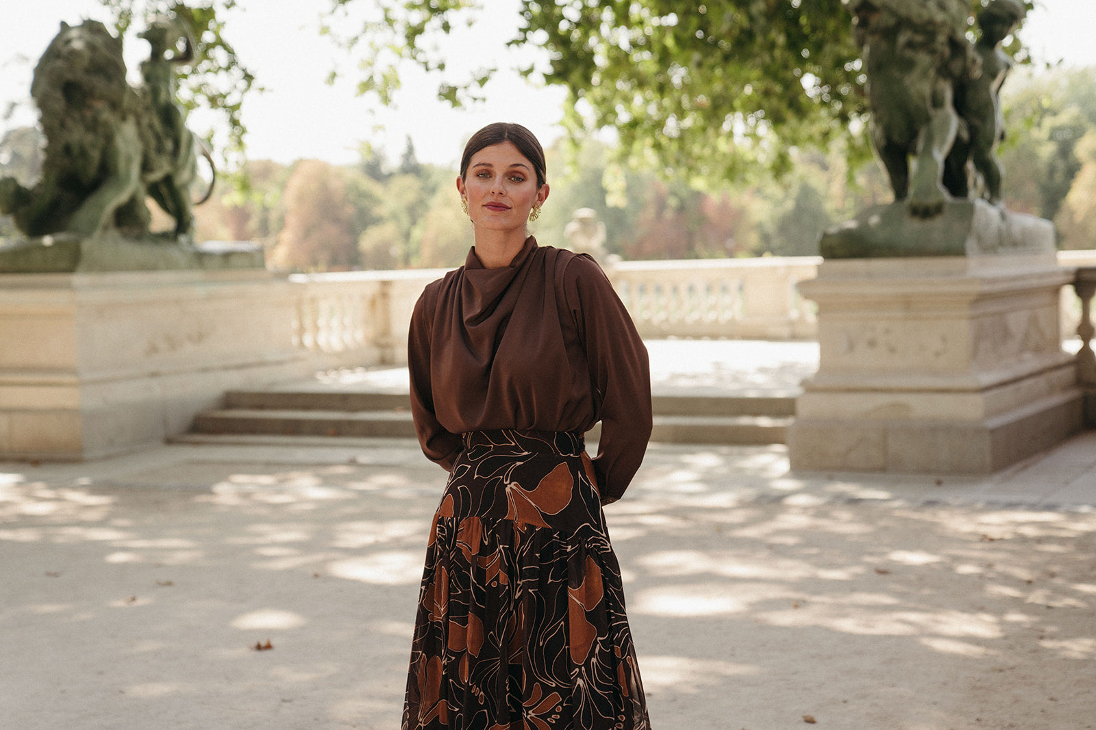 Estampados otoñales, siluetas con movimiento y tejidos con cuerpo, pensados para bodas entre septiembre y noviembre.