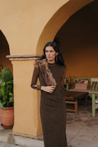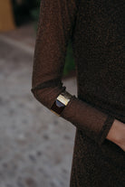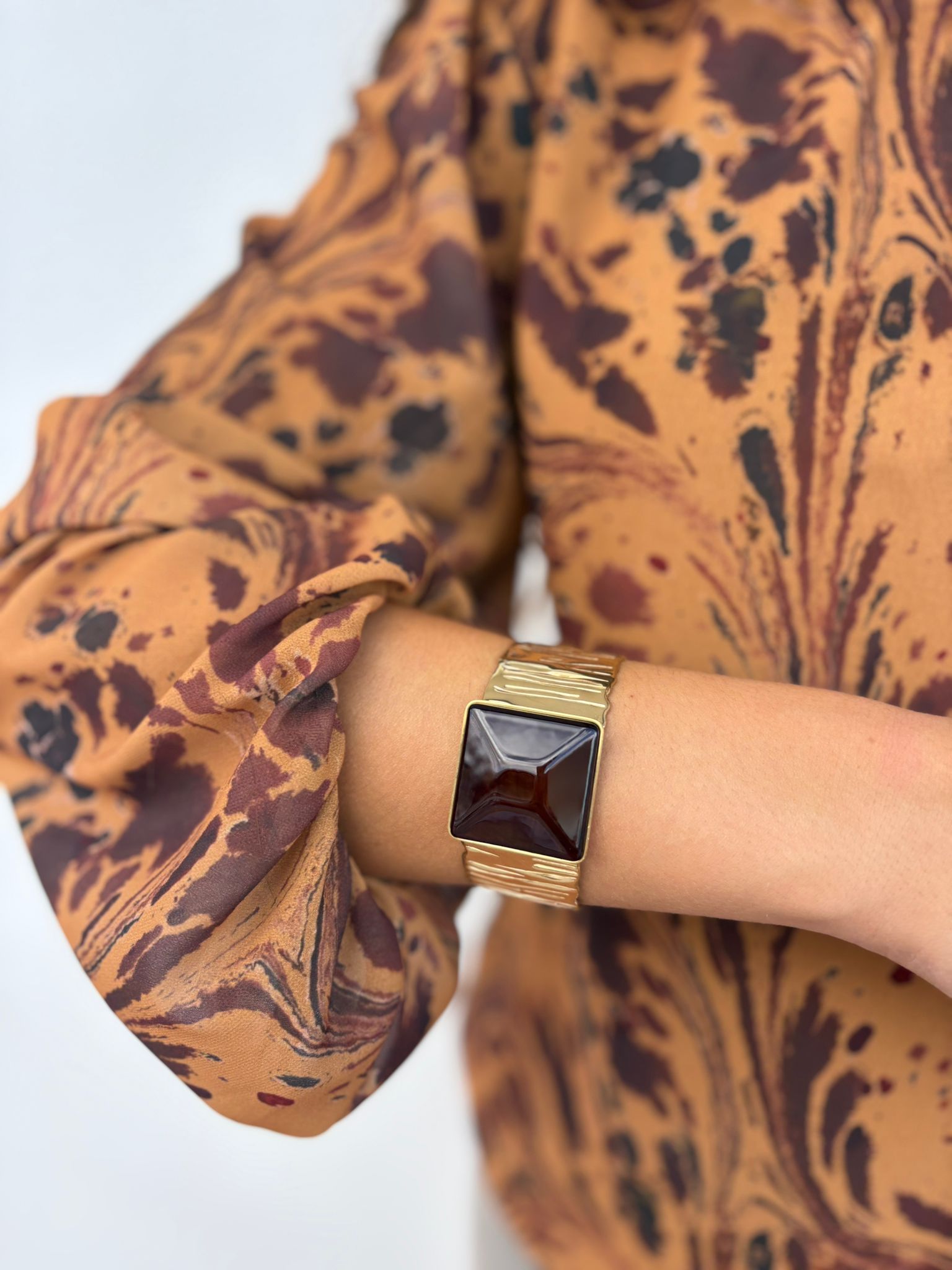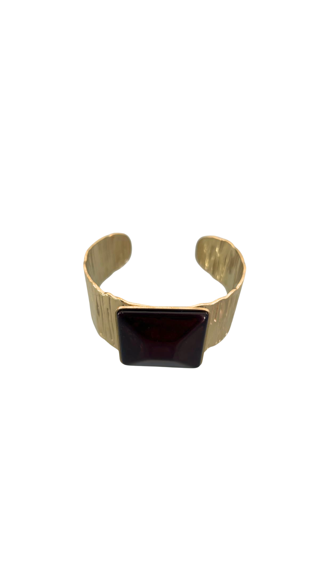 Brazalete dorado con piedra cuadrada en tono marrón para elevar cualquier outfit de otoño/invierno.
