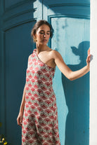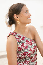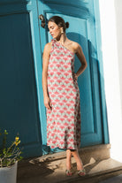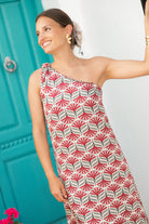 Vestido asimétrico sin mangas y con hombro recogido con detalle. Este patrón de vestido es sin duda uno de nuestros bestsellers para las temporadas estivales con su estampado colorido y favorecedor.
