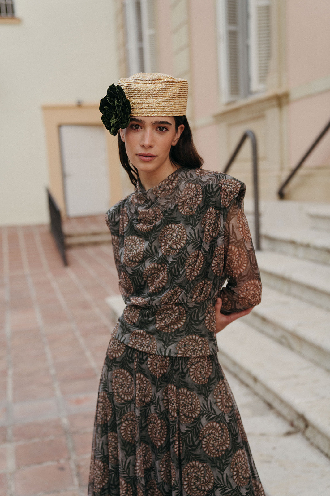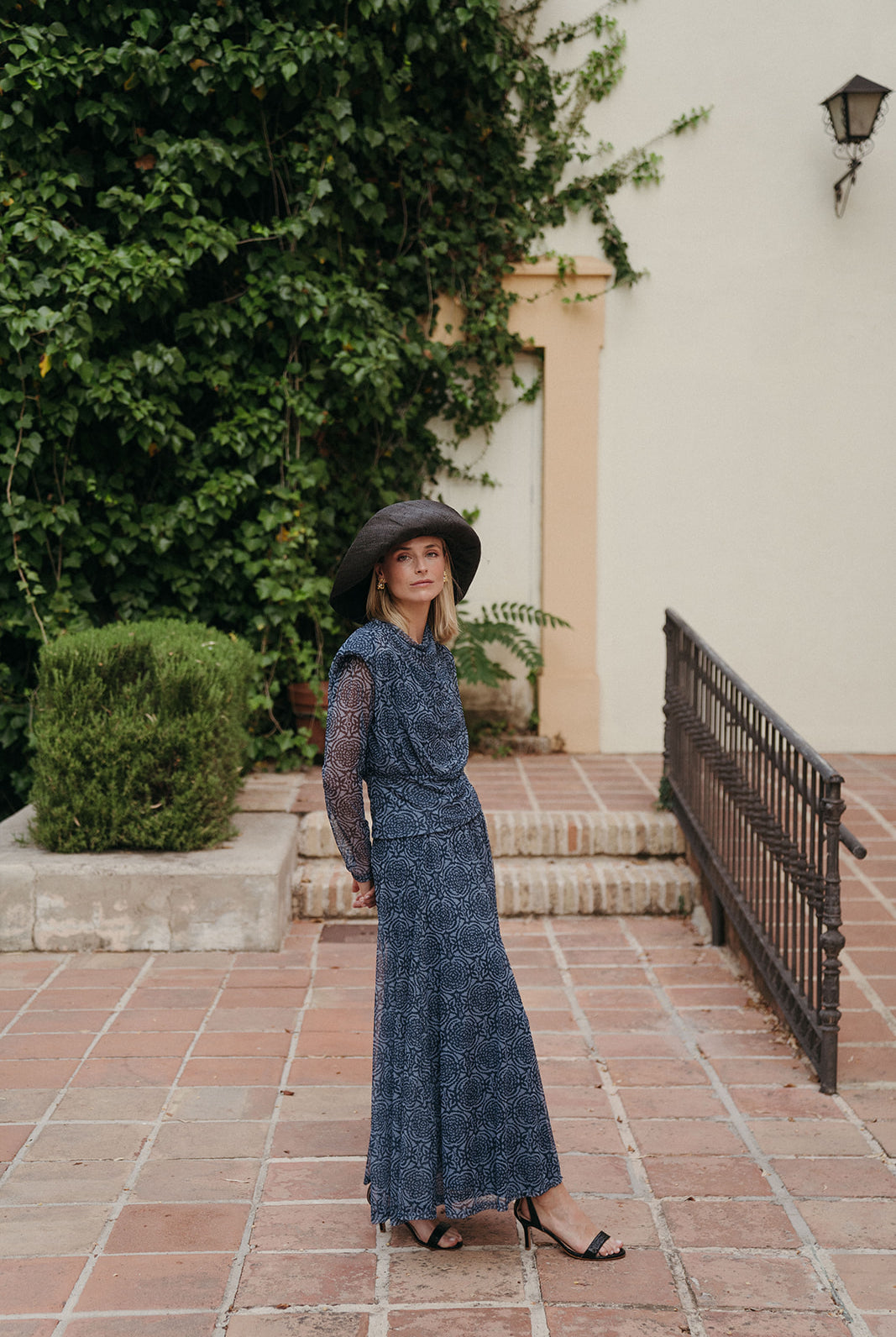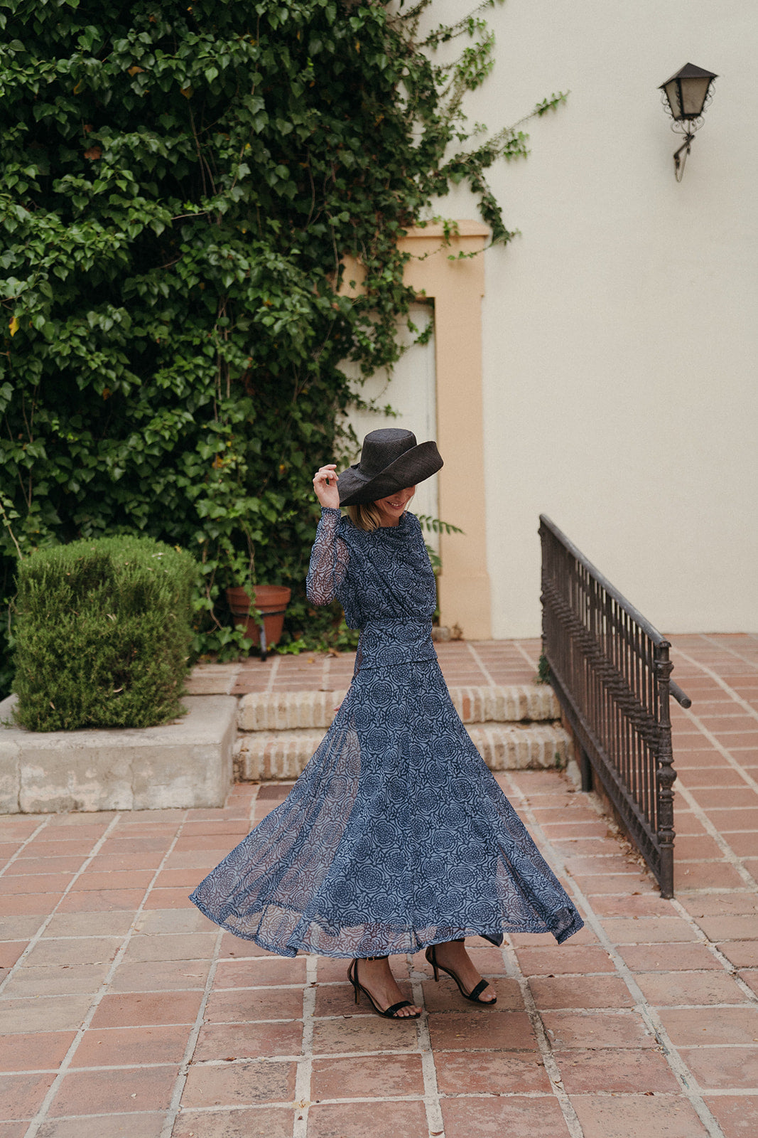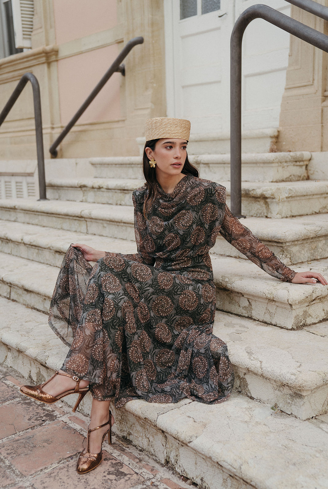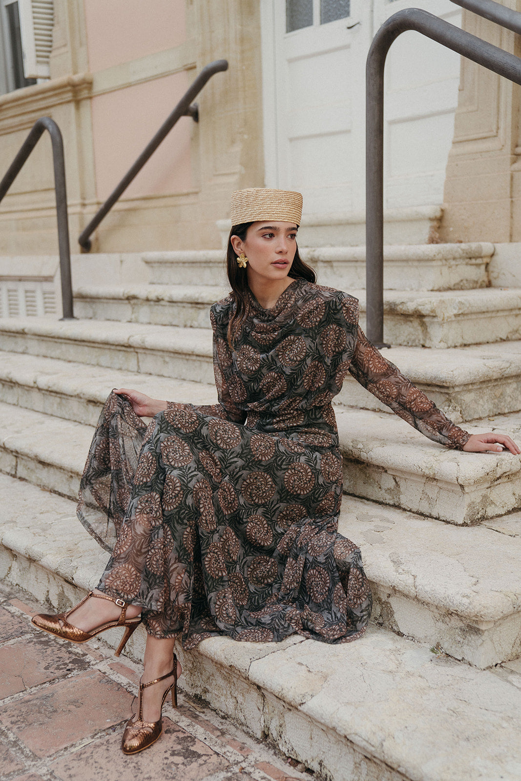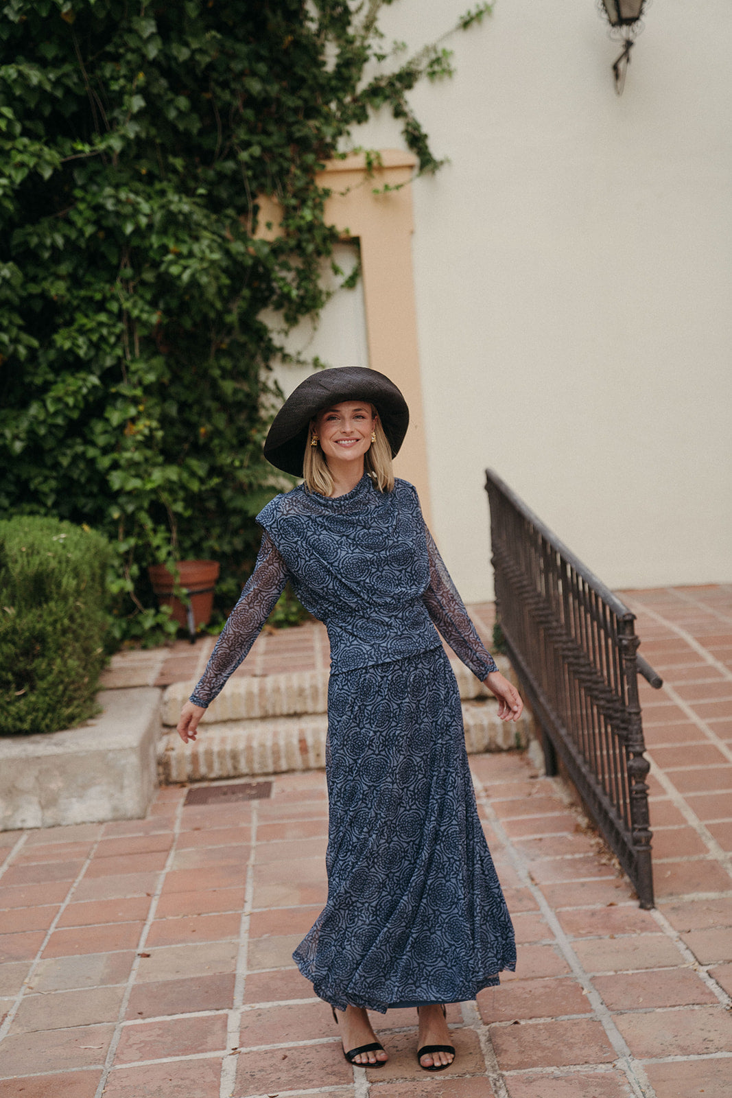 Estampados otoñales, siluetas con movimiento y tejidos con cuerpo, pensados para bodas entre septiembre y noviembre.