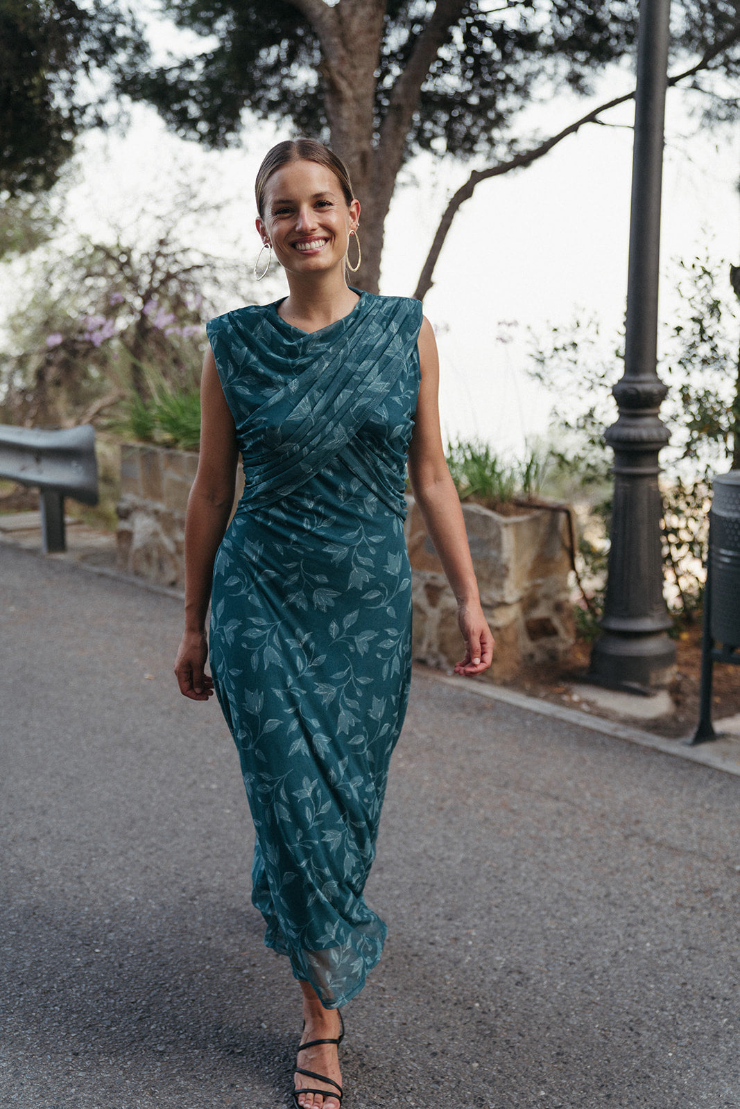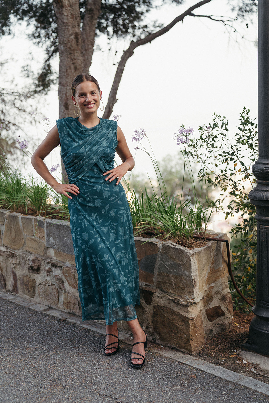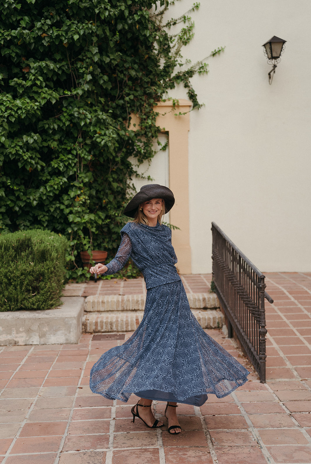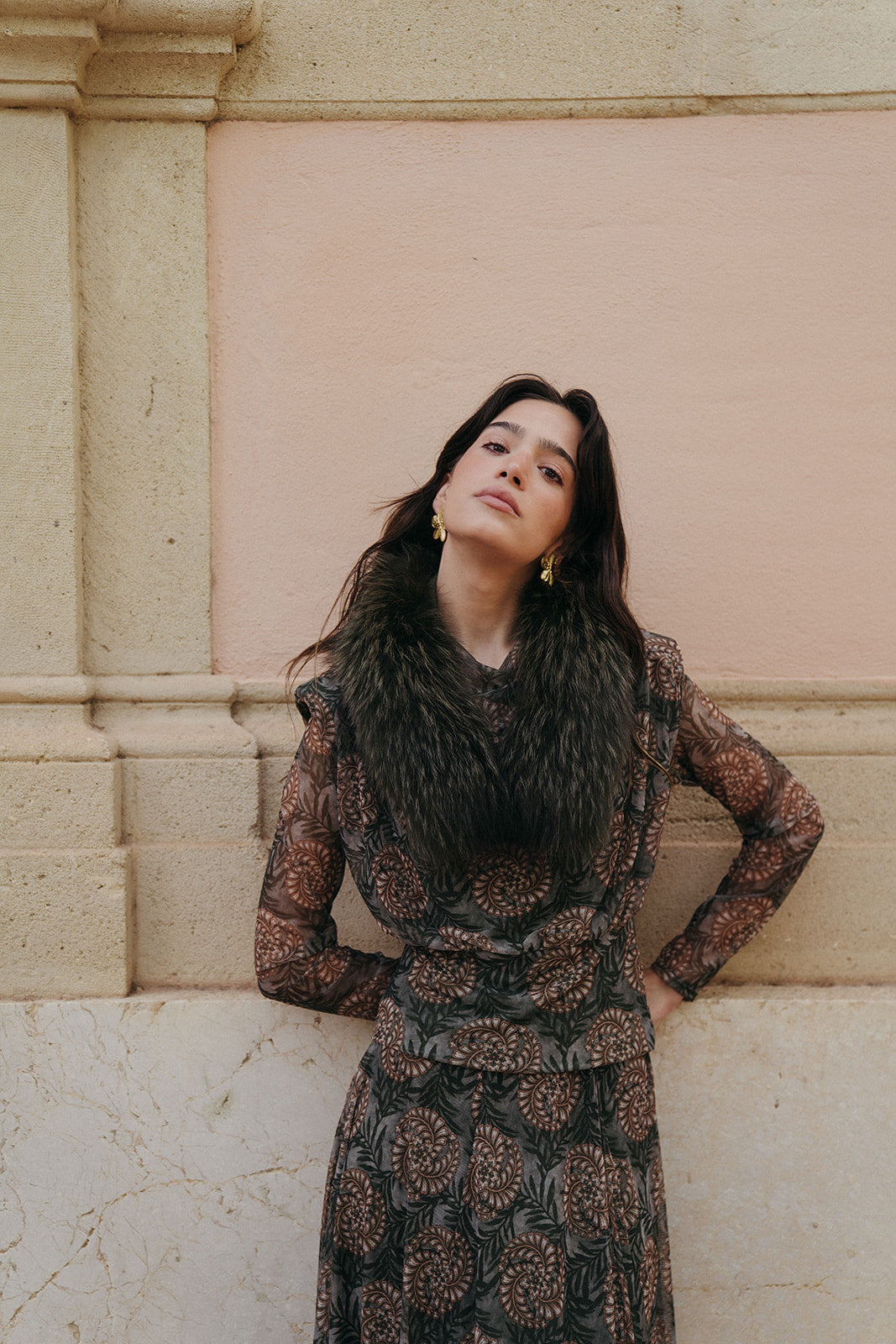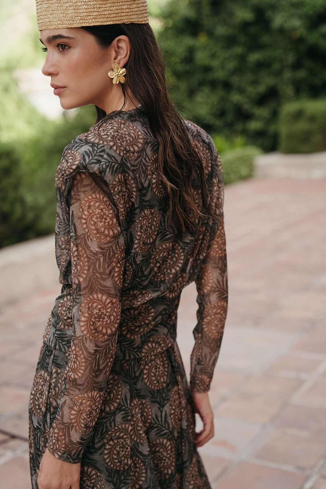 Estampados otoñales, siluetas con movimiento y tejidos con cuerpo, pensados para bodas entre septiembre y noviembre.