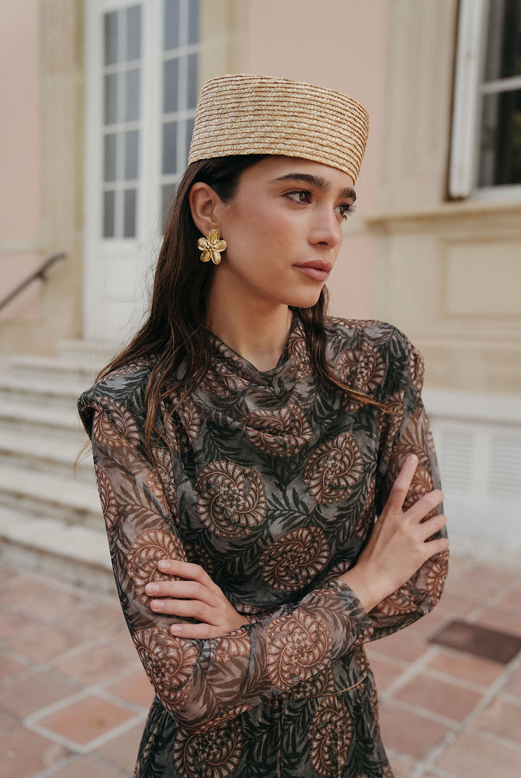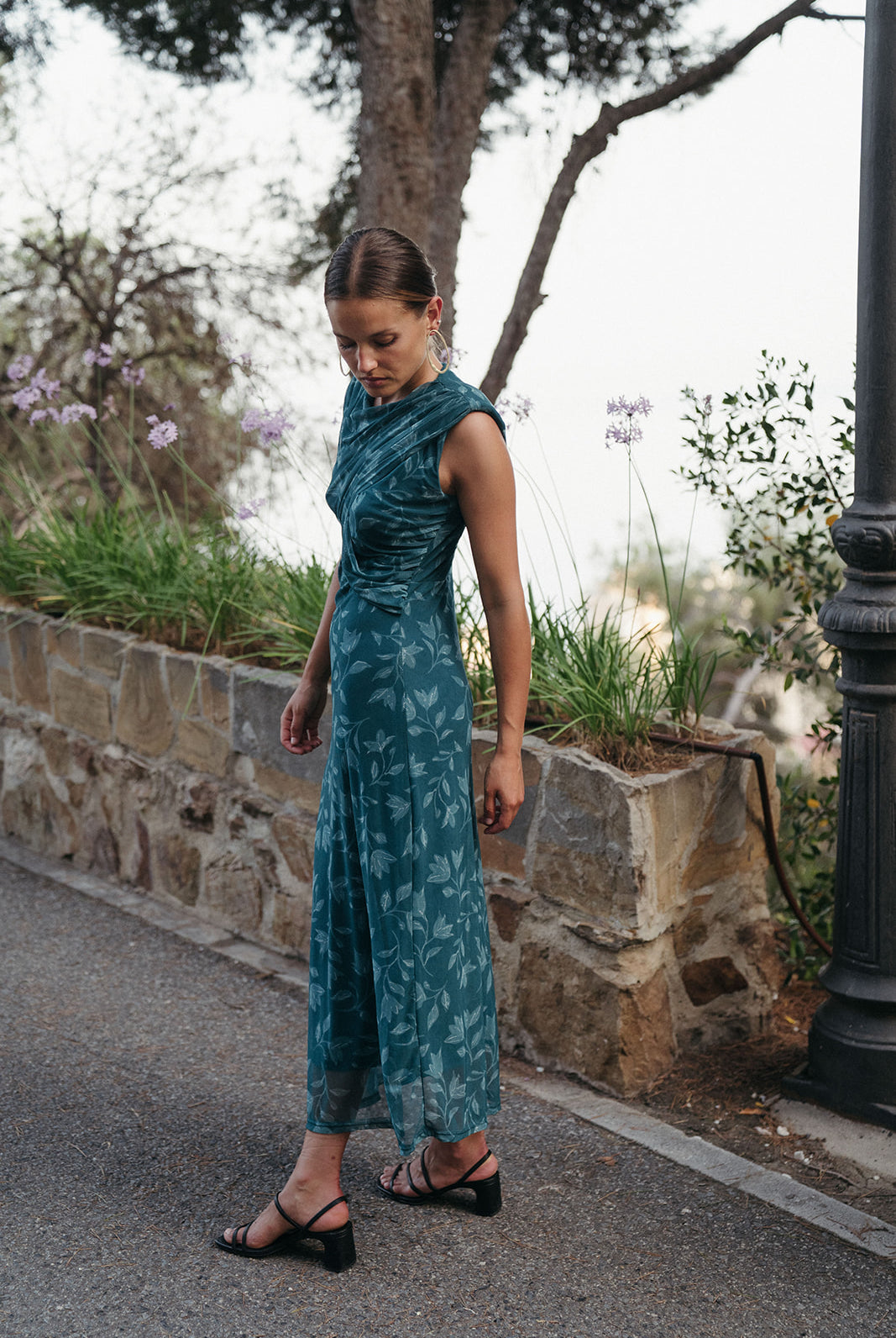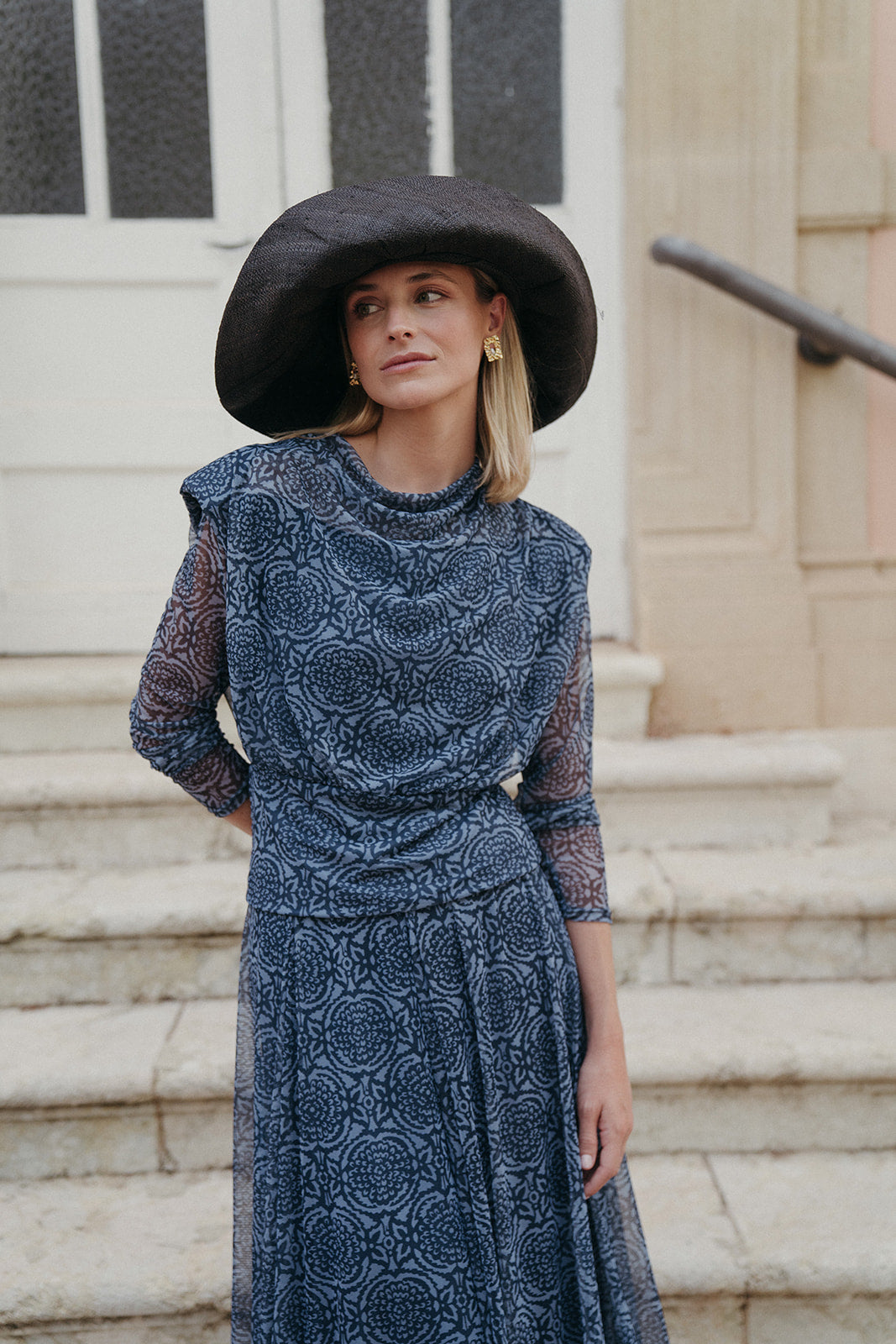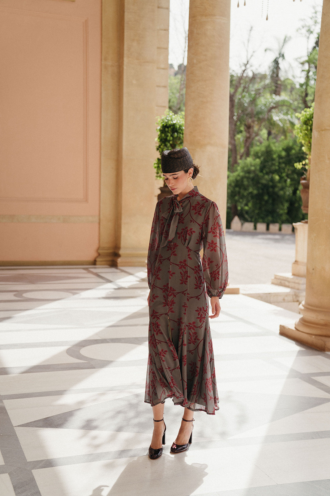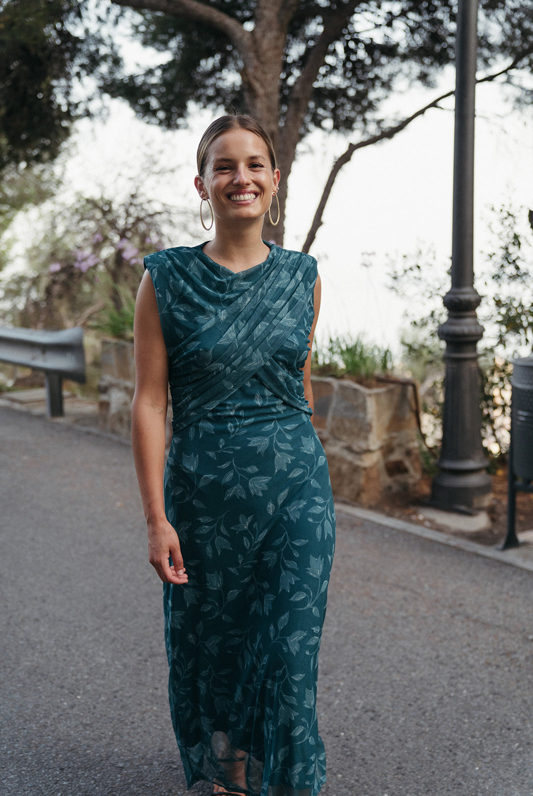 Estampados otoñales, siluetas con movimiento y tejidos con cuerpo, pensados para bodas entre septiembre y noviembre.