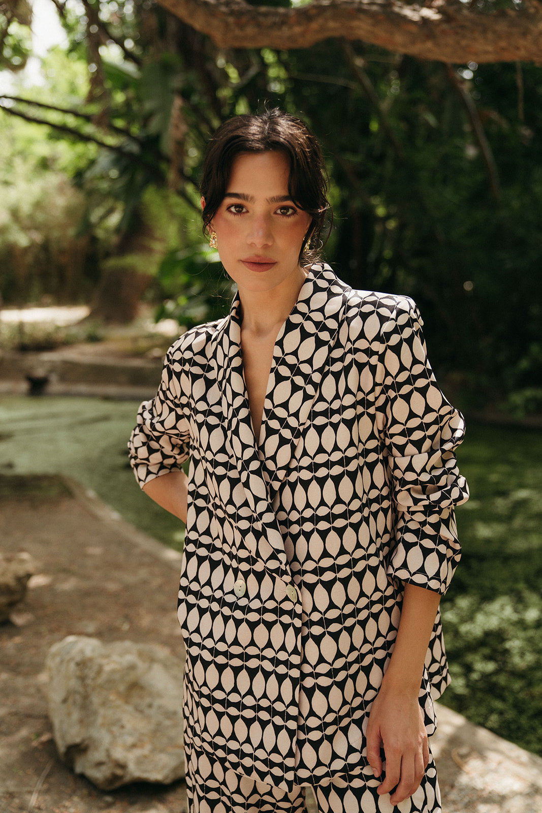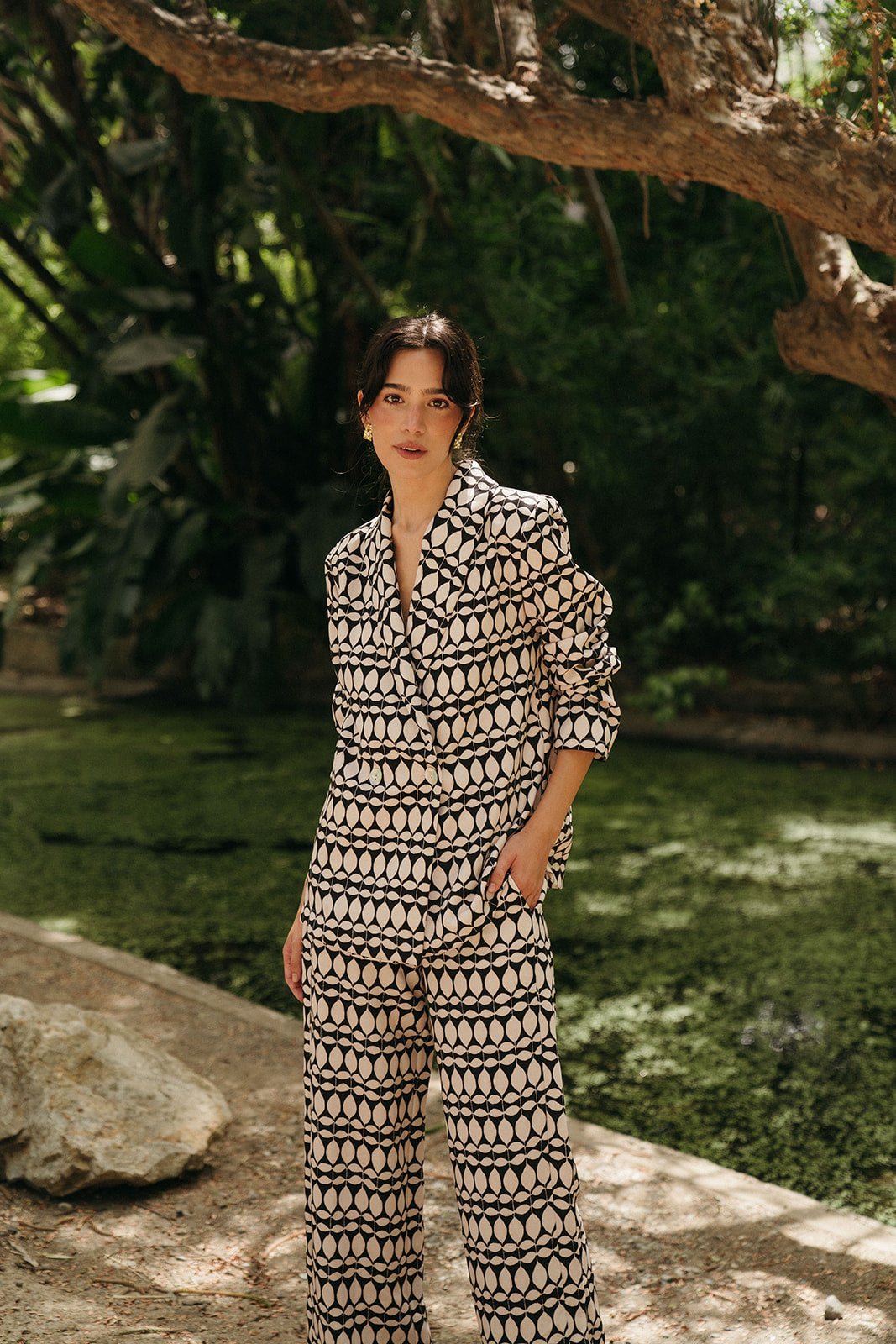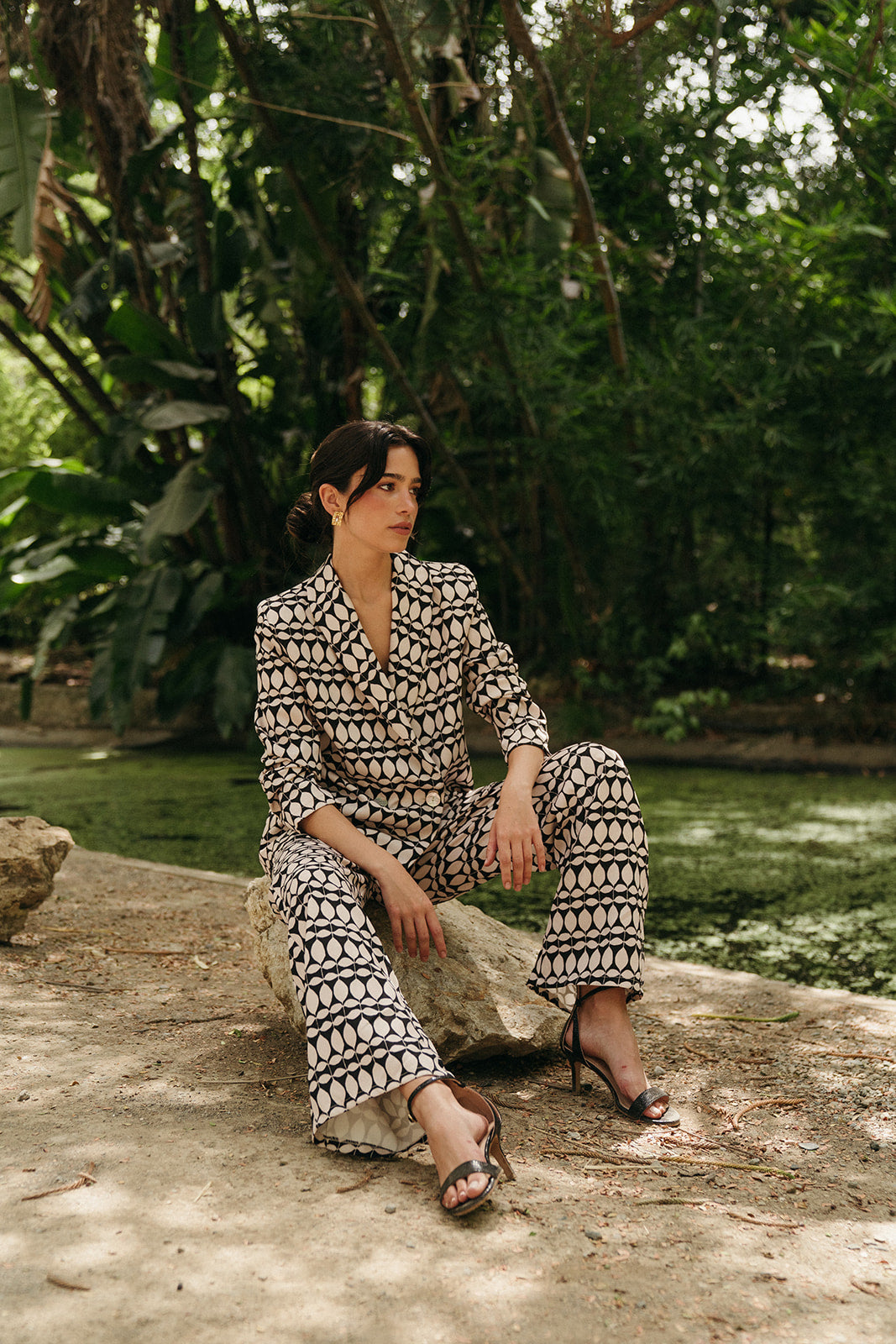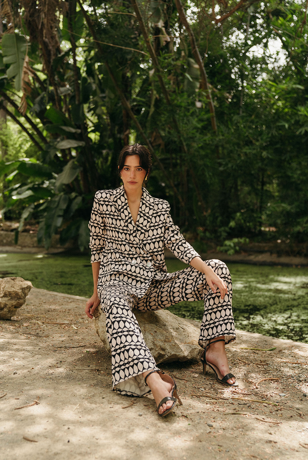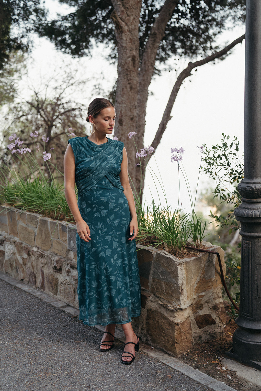 Estampados otoñales, siluetas con movimiento y tejidos con cuerpo, pensados para bodas entre septiembre y noviembre.
