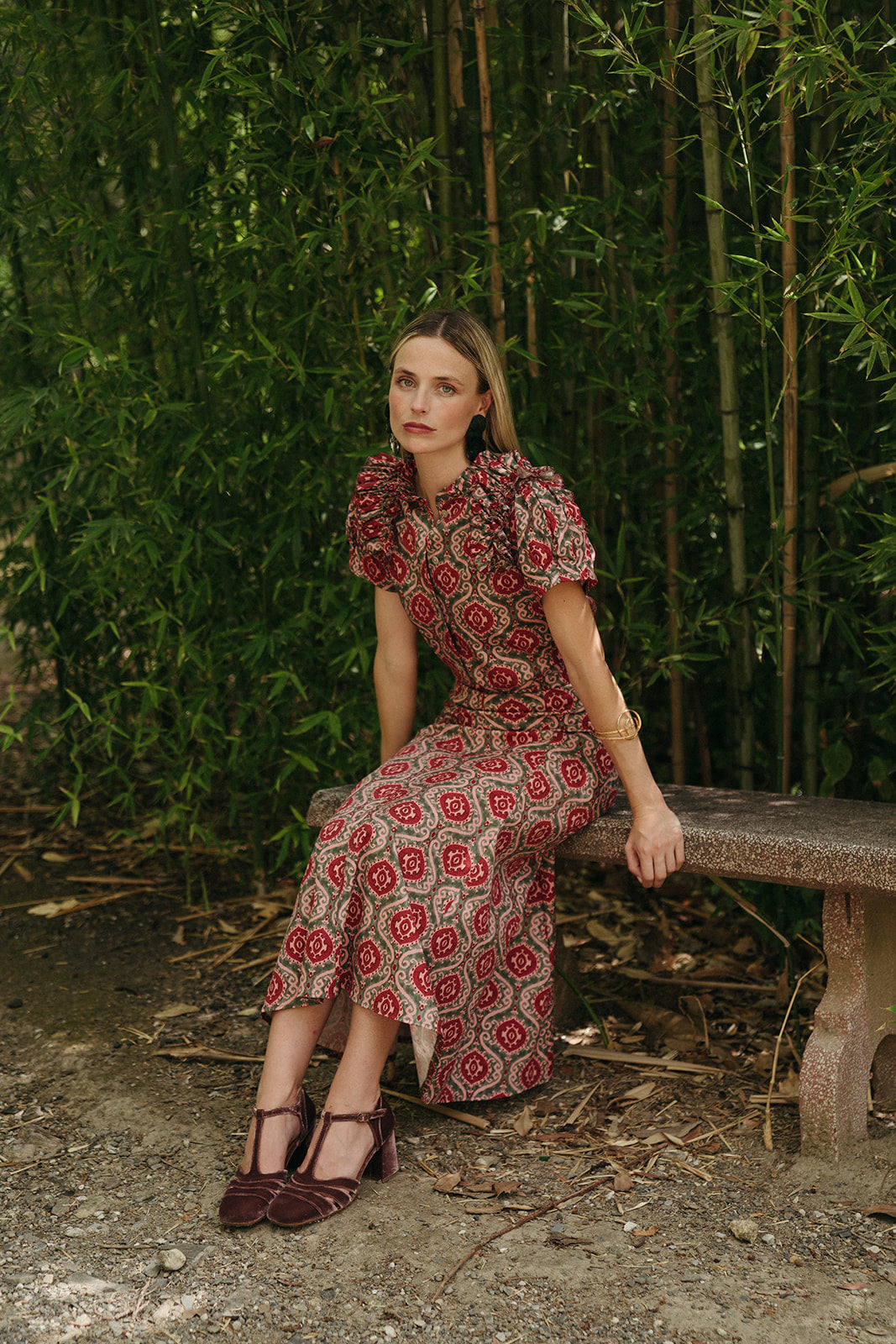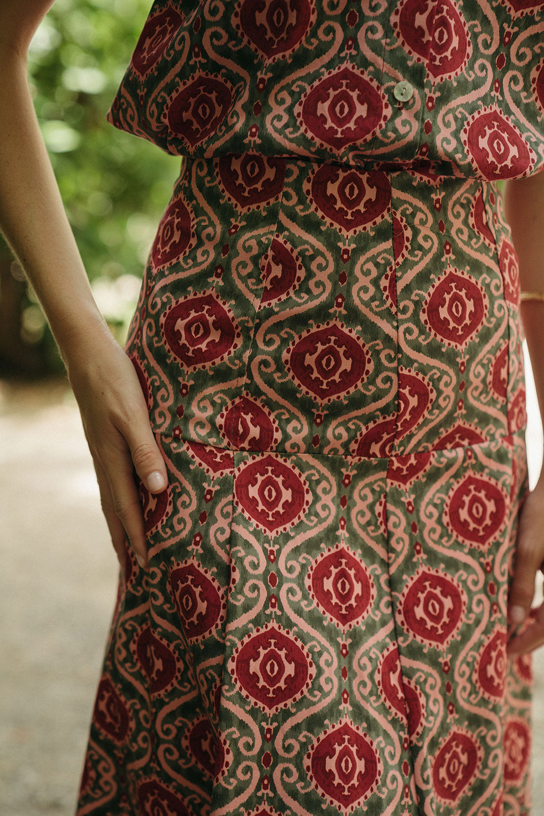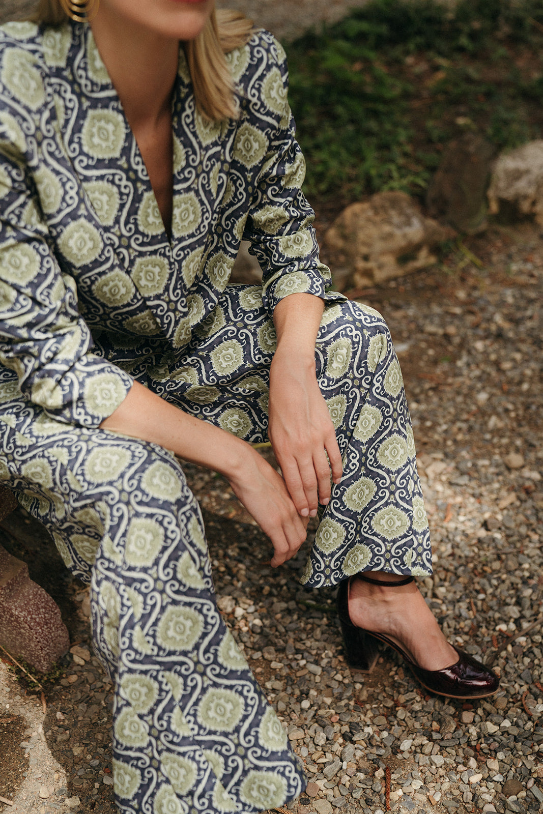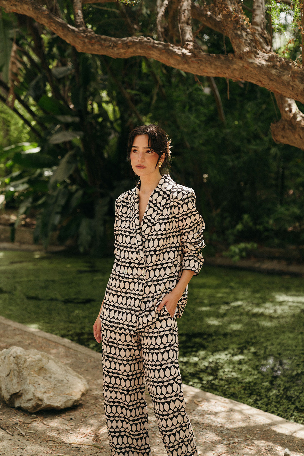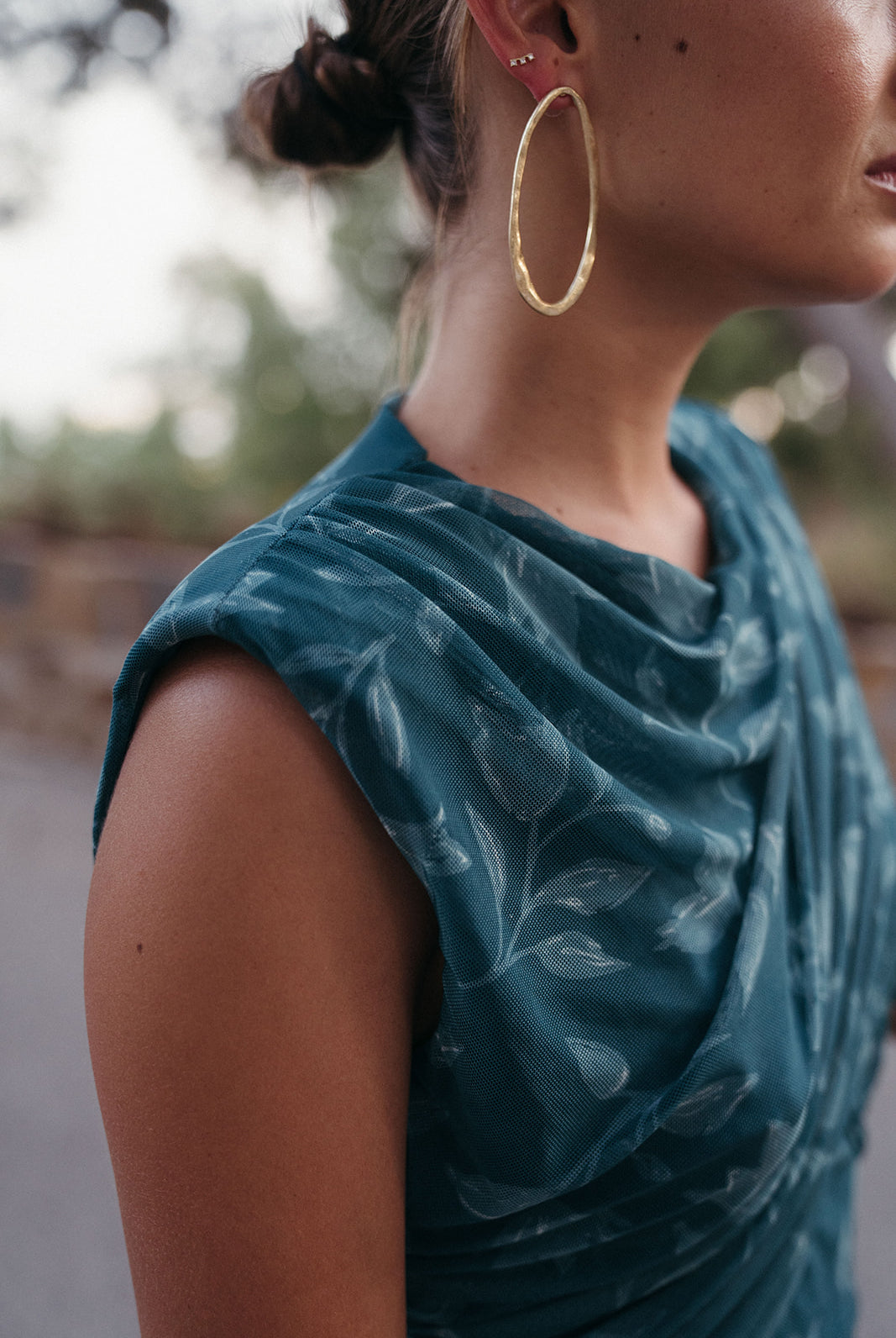 Estampados otoñales, siluetas con movimiento y tejidos con cuerpo, pensados para bodas entre septiembre y noviembre.