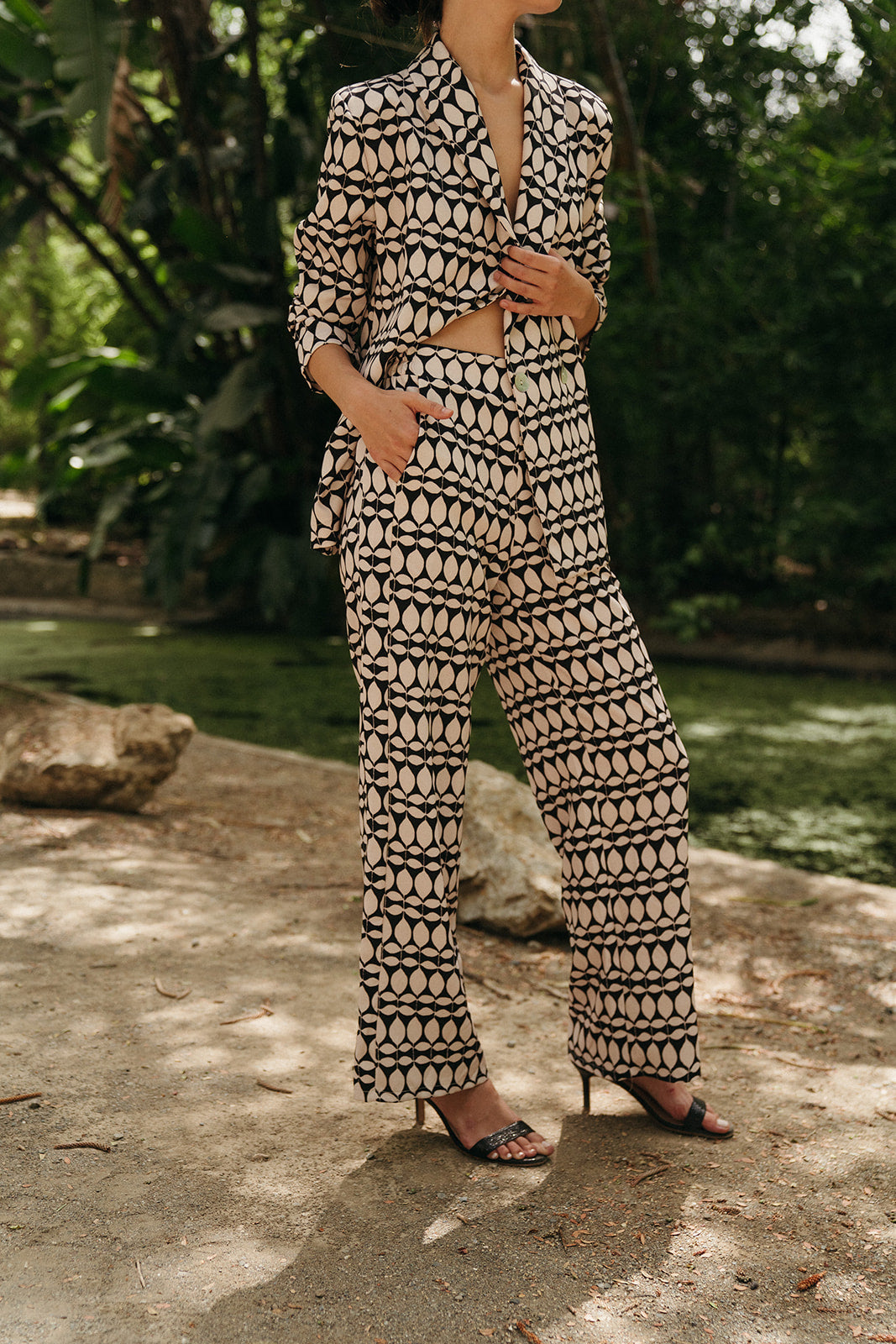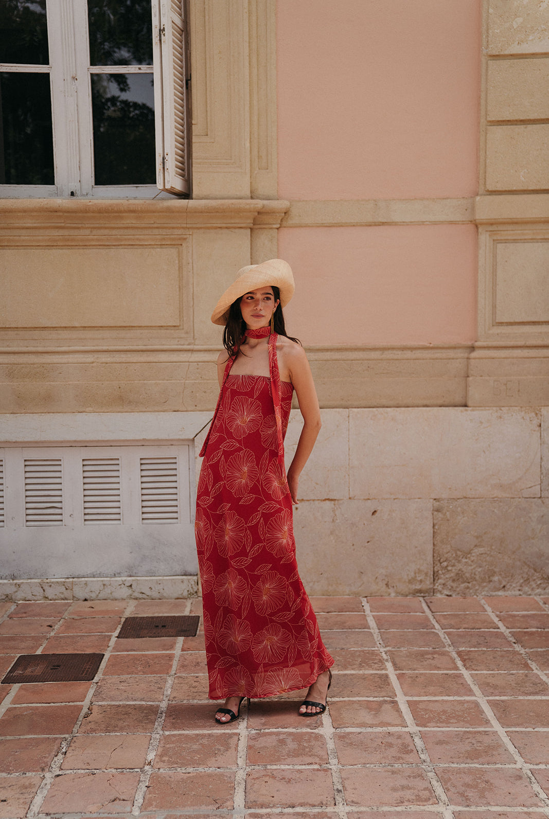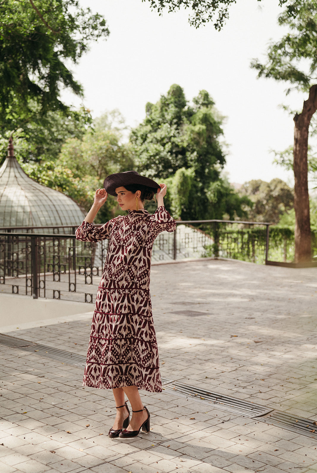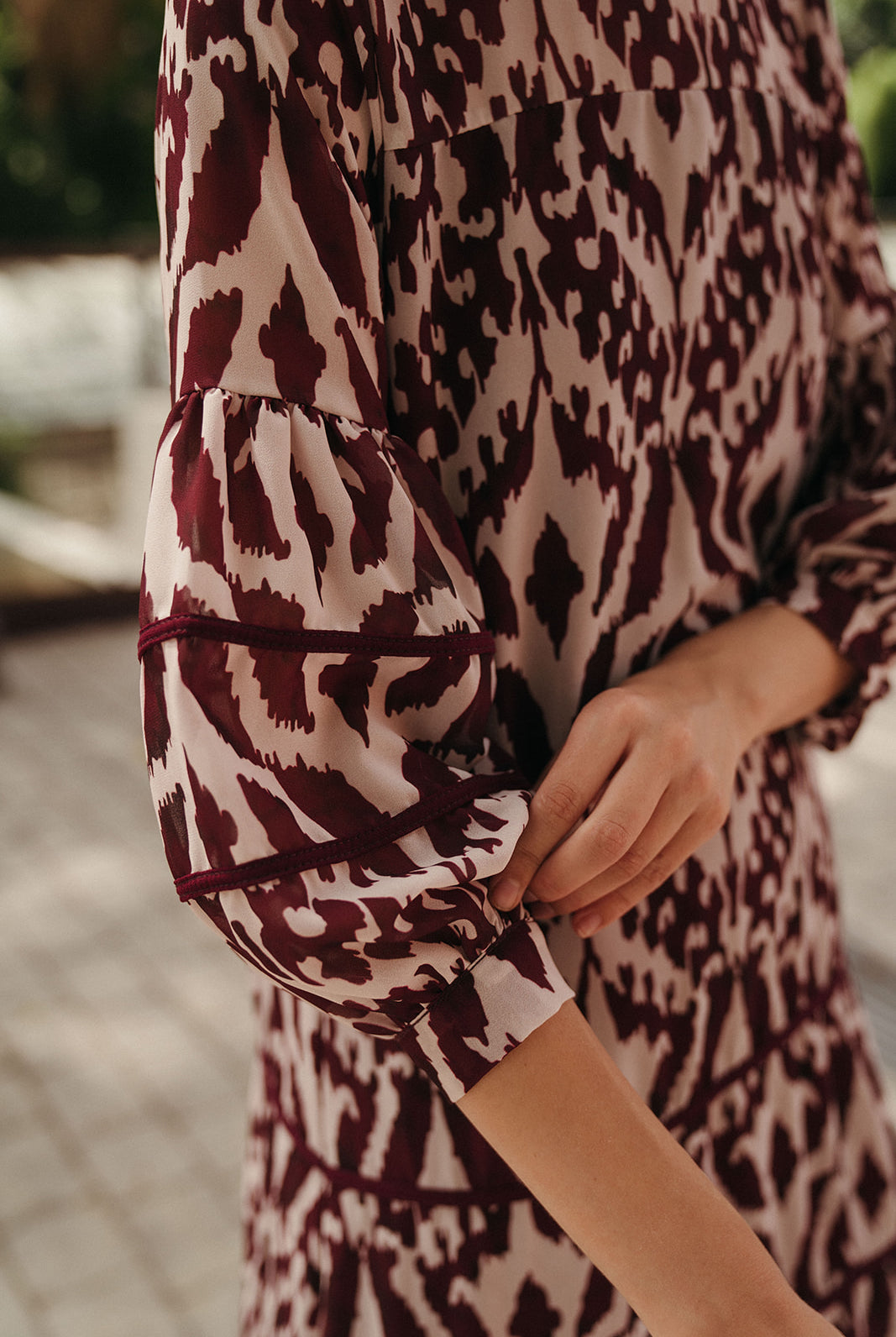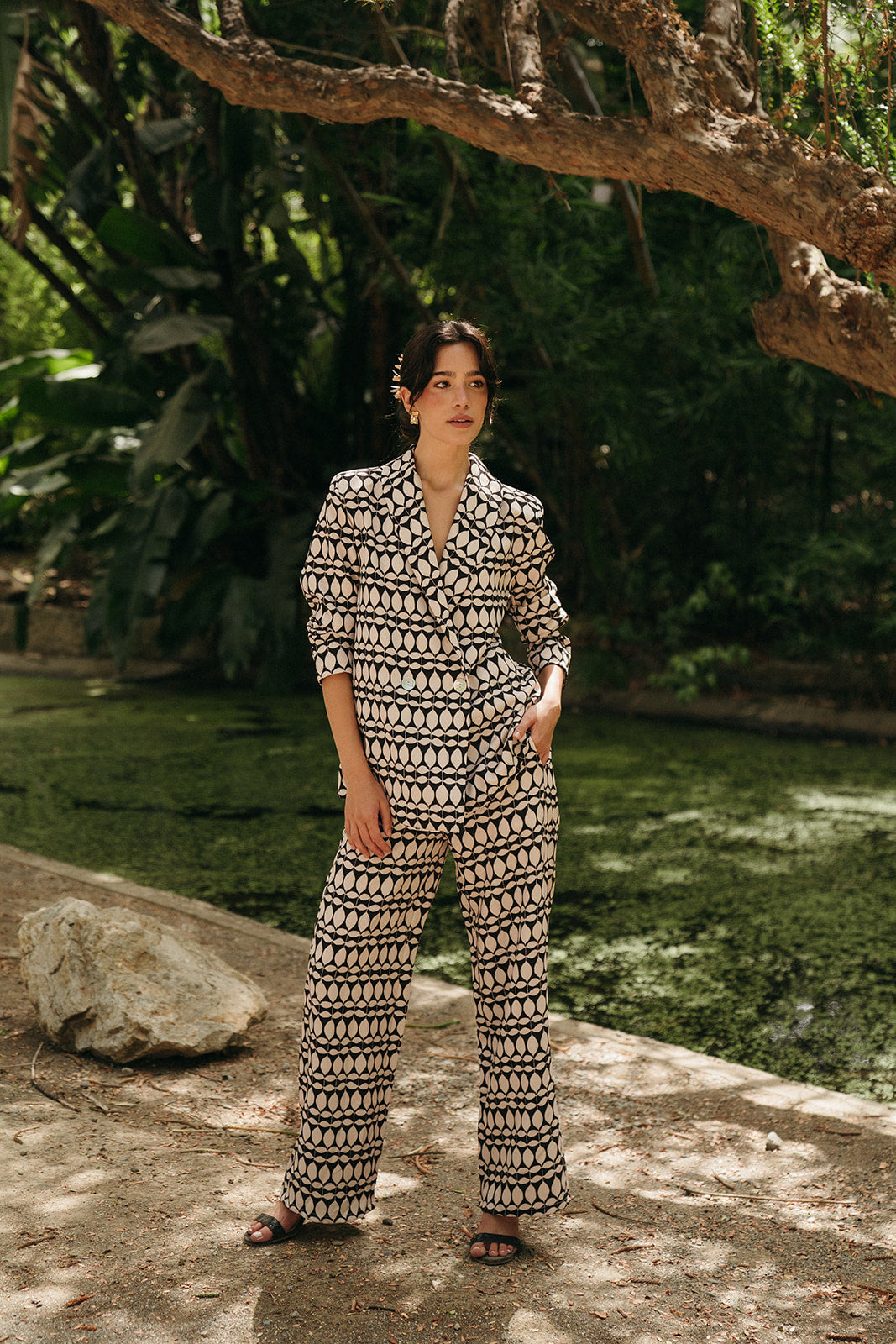 Estampados otoñales, siluetas con movimiento y tejidos con cuerpo, pensados para bodas entre septiembre y noviembre.