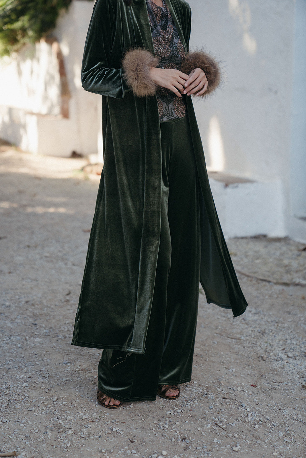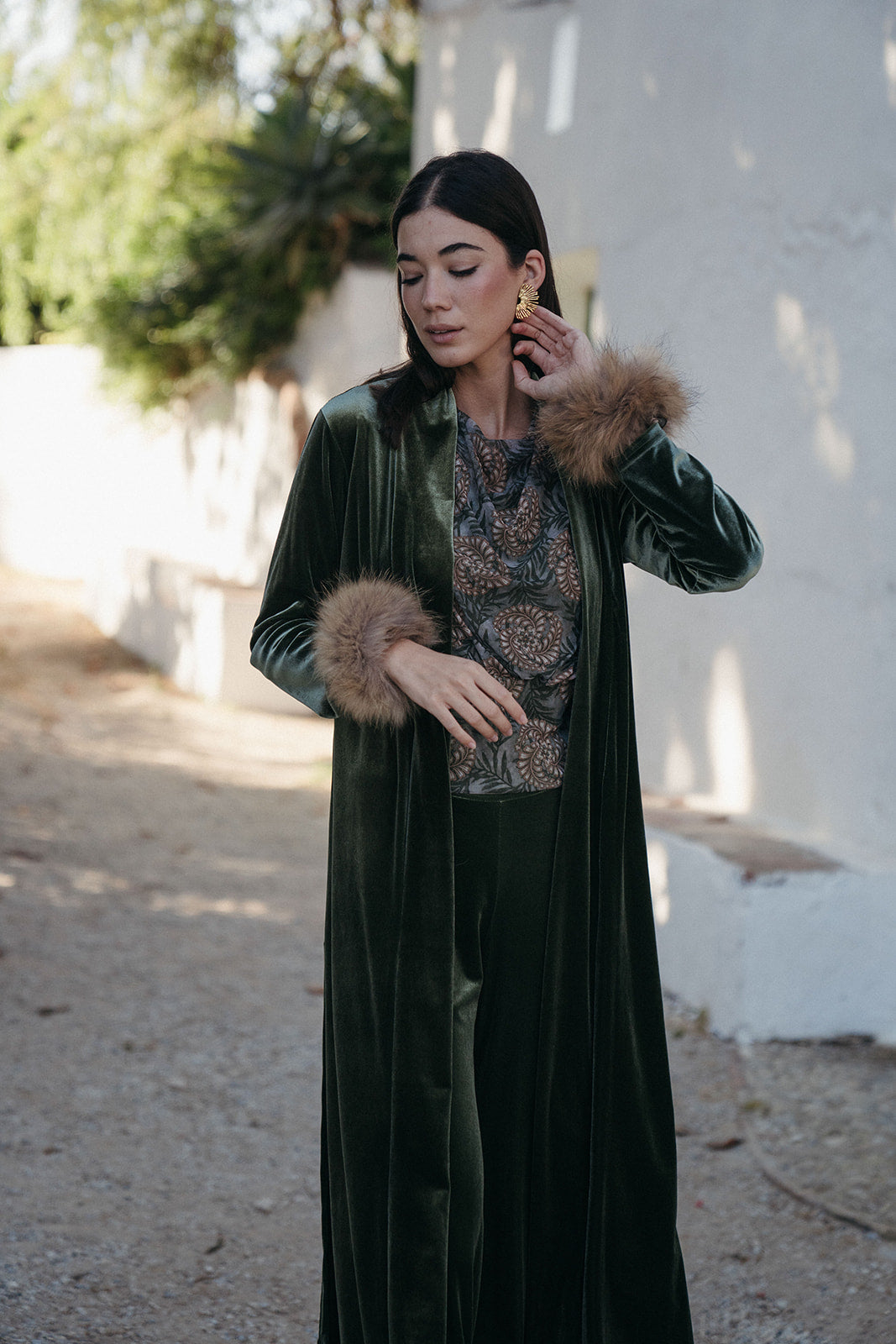 Kimono Terciopelo Verde Seco