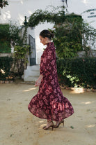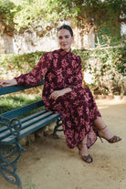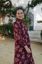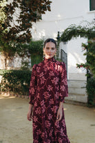 El Vestido Copo Flor es una pieza de corte midi y elegante confeccionada en tejido de gasa con un delicado estampado floral. De cuello alto fruncidoy mangas abullonadas terminada en puño, combina una silueta fluida con un aire romántico y sofisticado.