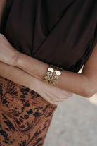 Brazalete dorado con hojas pequeñas en tono dorado para elevar cualquier outfit de otoño/invierno.