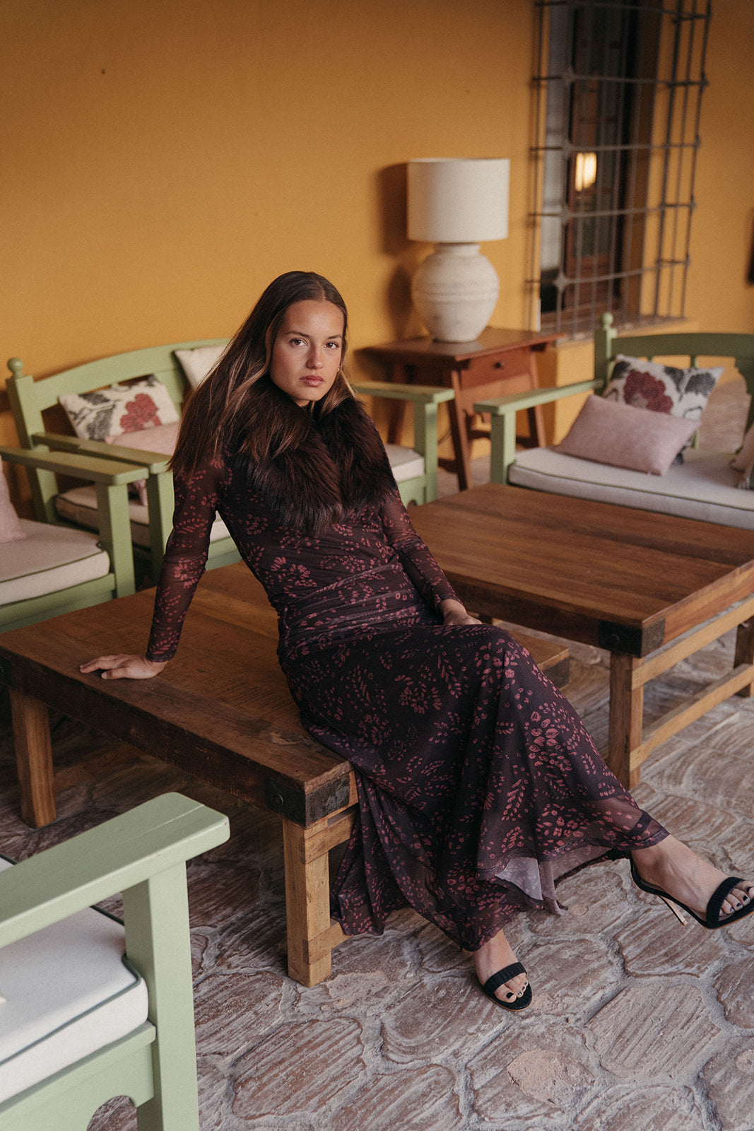 Cuello de pelo marrón chocolate natural ideal para invierno con cualquier look. Cierre automático con presilla. Al ser de pelo natural, la tonalidad puede variar algo respecto a la foto.